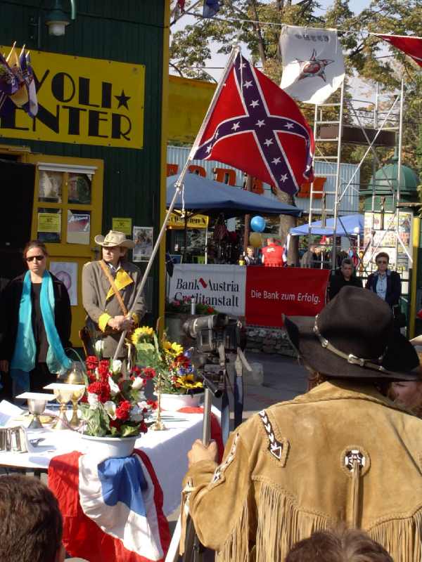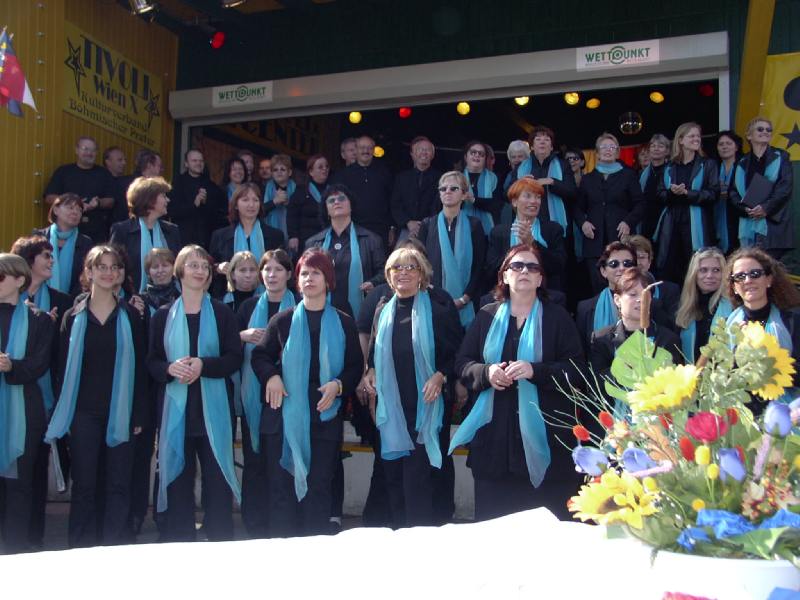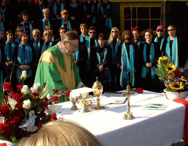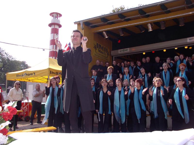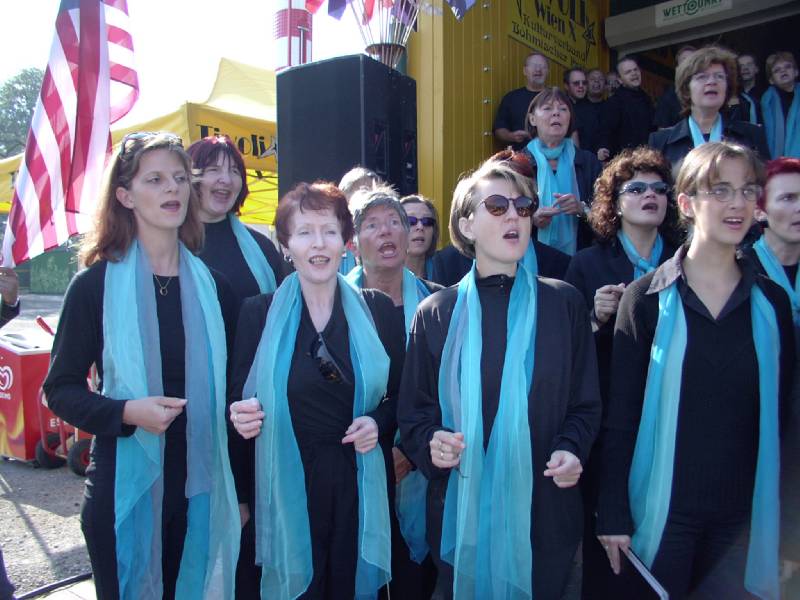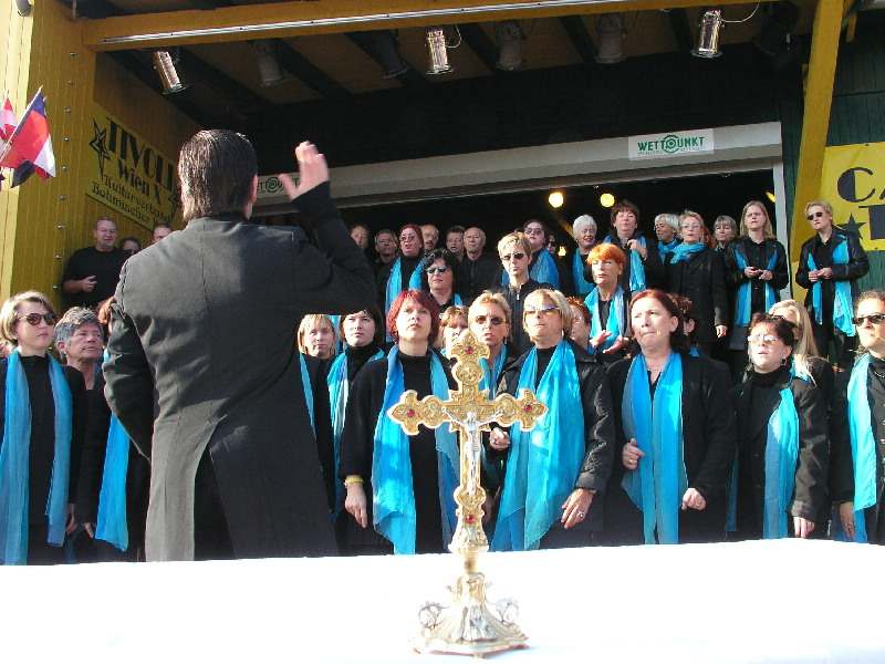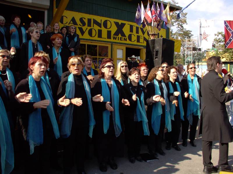 Hl. Messe Im Tivoli 28. Sept. 2003Im Rahmen des Country&Western-Familienfestes, hatte unser Chor am So, 28.9.2003 um 10.00 Uhr in einer Hl. Messe im Tivoli im Böhmischen Prater seinen zweiten Auftritt dieses Wochenende. Bei strahlendem Sonnenschein, einem sehr zahlreichen und gut gelaunten Publikum und einem sehr sympatischen Pfarrer (für seine Predigt für mehr Verständnis und Toleranz in der Kirche erhielt er fast mehr Applaus als wir) liefen die Longfield Gospel Singers zur Höchstform auf. Auch Georg war mit der musikalischen Leistung zufrieden und das Publikum dankte es mit Applaus und Zugabe Rufen, wie man es in einer Messe nur selten findet.