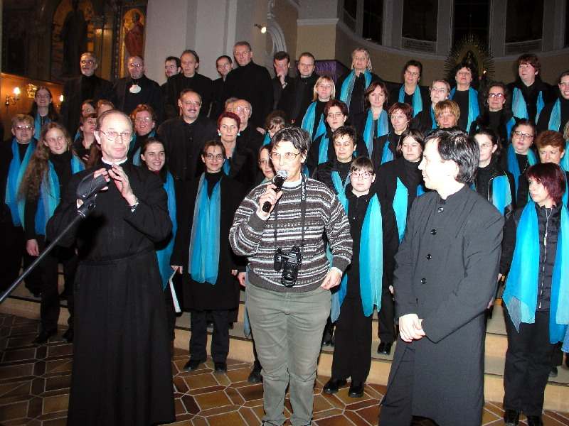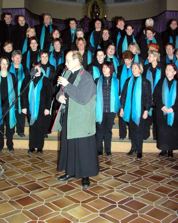 MUSIK, DIE VERZAUBERT……mit diesen schönen Worten beschrieb P. Elmar, Pfarrer von Kaisermühlen, unsere Gospels, die wir am 6. Dezember in seiner Kirche singen durften. Wir fühlten uns getragen von unendlich viel Wärme, Liebe und Gastfreundschaft, und das gemeinsame Singen machte Freude wie selten zuvor! Wie der Forumeintrag unseres Zuhörers (und begeisterten Mitsängers ;-) Thomas zeigt, spürte auch das Publikum diesen vorweihnachtlichen inneren Frieden. "Ich kann nicht gut singen, aber ich habe einen langen Atem!" meinte P. Elmar. Und diesen hat er nicht nur einmal bewiesen, seit er sich vor Jahren daran machte, seine Vision eines pfarreigenen Hospizes für alle Kaisermühlner zu leben. Heute werden 70 Menschen mittels Heimhilfe und weitere 30 direkt im Hospiz betreut. Ziel war es, jedem Kaisermühlner zu ermöglichen, in seiner Wohnumgebung bis zuletzt leben zu können. Und das ist durch unermüdliche Zusammenarbeit vieler Menschen auch gelungen. "Ich bin verzaubert, wenn ich Blumen fotografieren kann!", sprach er und überraschte Georg und den gesamten Chor mit zwei wunderschönen selbstgemachten Fotos samt Widmung. DANKE, liebe Kaisermühlner, für diesen herzerwärmenden Abend! Vielen Dank Marlene für diesen Beitrag Weitere Fotos gibt es auf der Homepage vom Pflegehospiz.