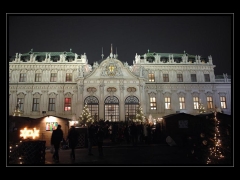und Besucher des Weihnachtsmarktes vor dem Schloss Belvedere.