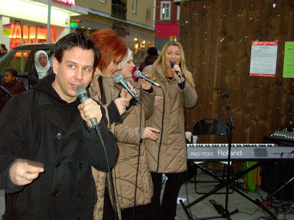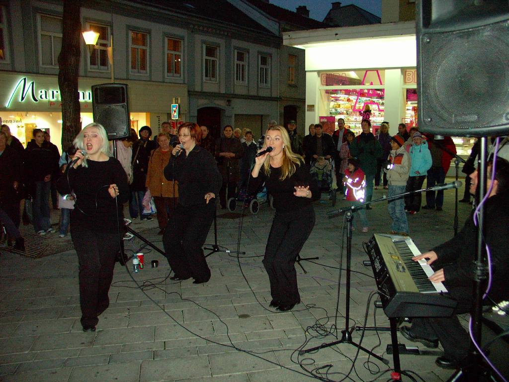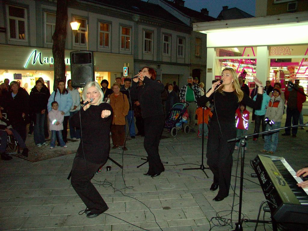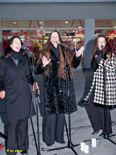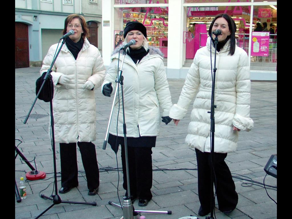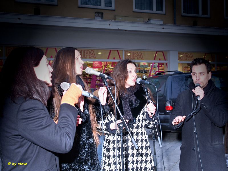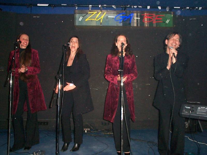 "Gospel & More" gaben eines ihrer raren Konzerte. Unter dem Motto "schöner kann man Gospel nicht singen" stellten sich die 3 Sängerinnen Eva Kraus, Sandra Rose und Carola Caye unter der Leitung von Komponist und Sänger/Pianist Georg Weilguny lustvoll und sangesfreudig der Öffentlichkeit, und geizten dabei weder mit musikalischen noch optischen Reizen und heizten dem lieben Gott und dem zahlreich erscheinenden Publikum ordentlich ein... Praise the Lord with Voice-Acrobatics in der ZUGABE.