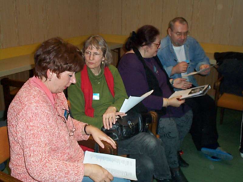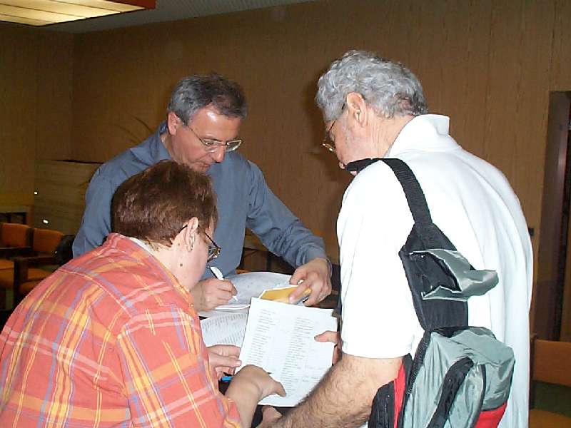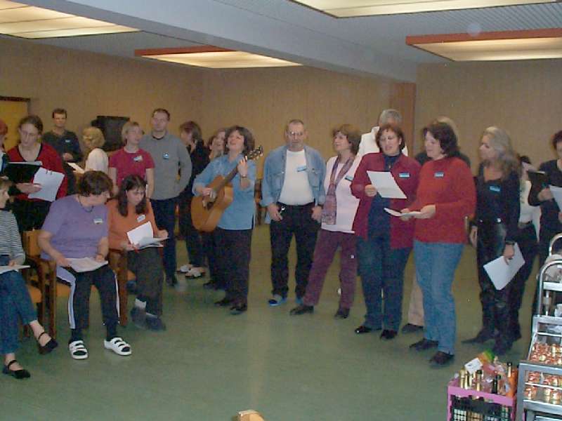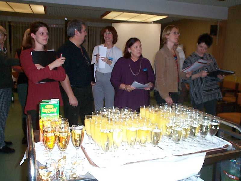 und gibt uns eine Aufgabe mit. Wir sollen mit allen Anderen plaudern und uns das bestätigen lassen. |